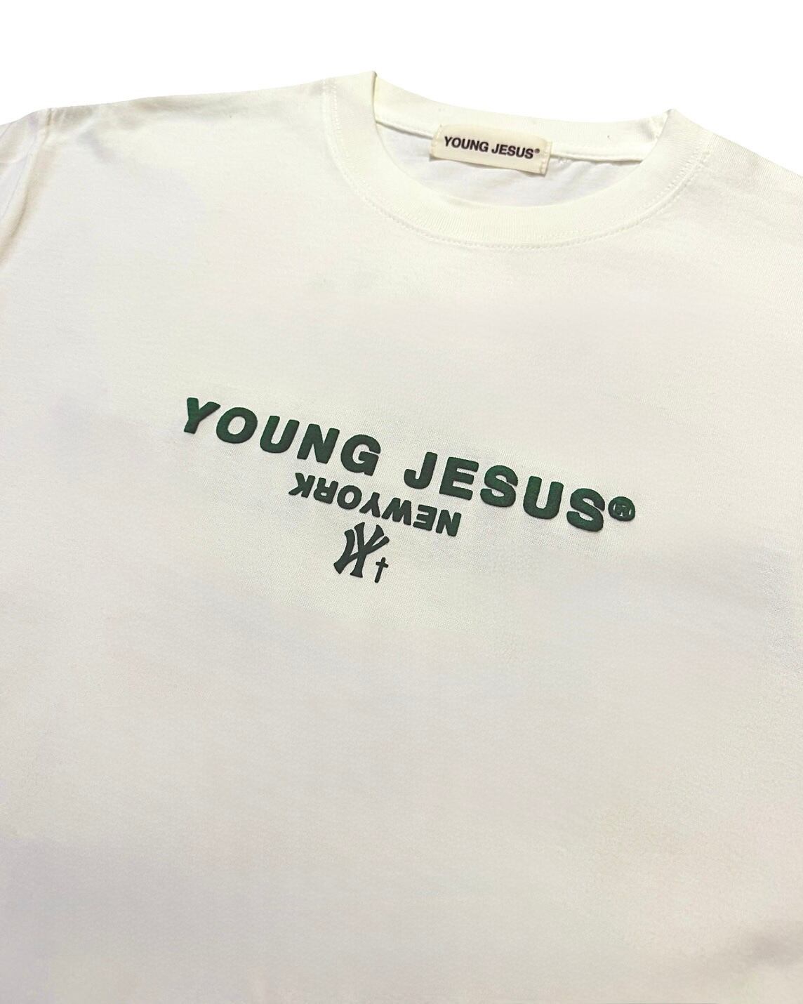 YJ NYC Print VanillaWhite&GreenLogo S/S TEE